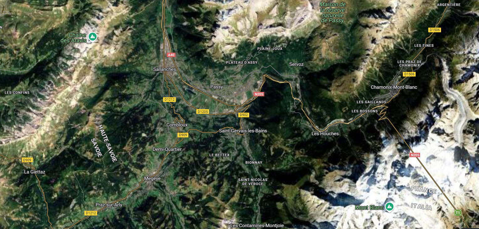 - Fin de l’autoroute : Les Houches, Chamonix-Mont-Blanc et Vallorcine